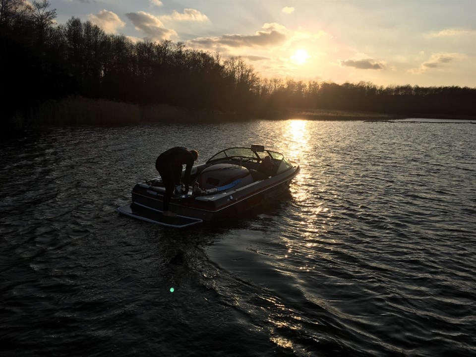 I kväll sjösattes båten, Henrik och Mattias fick inviga säsongen med några slalompasseringar.