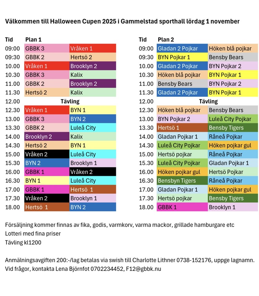 | Match mot Gladan F18 | 29 nov, 15:10 |