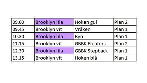 Brooklyn lila ( 09,00, 10,30, 12,30)
