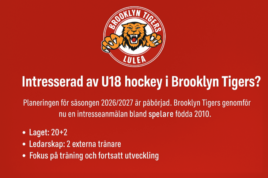 Klicka på bekräftelselänken i det mejl vi skickat dig för att börja ta emot uppdateringar från Brooklyn Tigers Unga HF U16.
