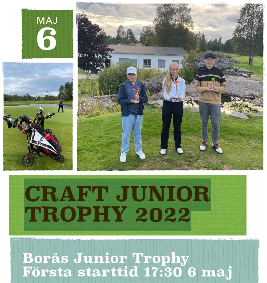 Borås Junior Trophy / CRAFT JUNIOR TROPHY 2022 Första starttid 17:30 6 maj Nu startar vår populära juniortävling igen, ny sponsor massa fina priser. Öppen för alla med hcp, se reglerna på hemsidan under junior och tävling. Anmälan görs i MinGolf GRILLEN ÄR PÅ PLATS Team Utveckling 2 maj 2022 0kommentarer