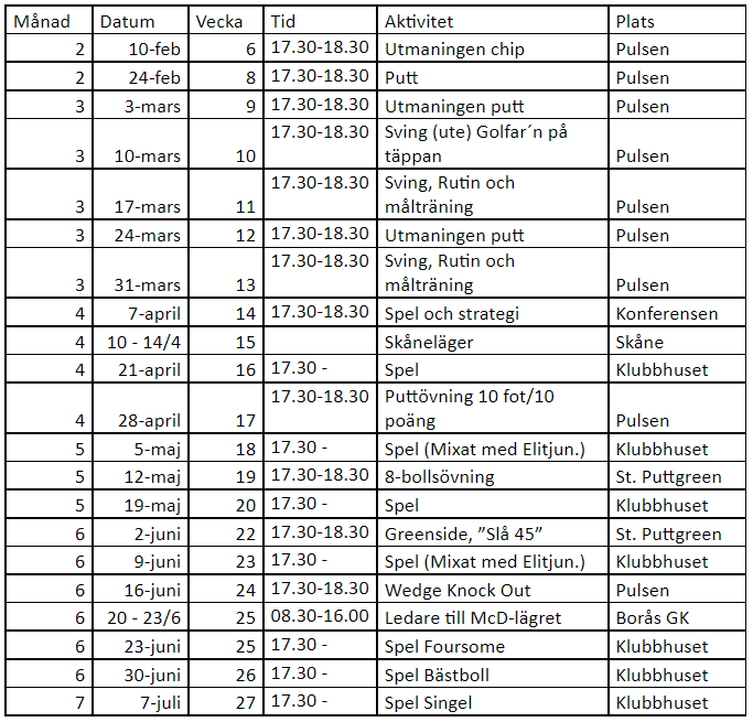 Hej på Er! Nu är det snart dags för Skånelägret. Vi bor traditionsenligt på Falsterbo Kursgård i Hölviken. Vi kommer samlas för avfärd på Borås Golfklubb klockan 07:00 den 10 april. Vi räknar med att vara tillbaka i Borås cirka klockan 19:00 torsdag den 14 april. Målet med lägret är att Ni skall komma igång med spelet på banan och börja tänka spel efter en försäsong som handlat mycket om teknik. Som vanligt kommer lägret att avslutas med den mycket prestigefyllda kavajträningen Skåne Masters. Kostnad för lägret är 1875 kronor och kommer faktureras senare. Att ta med Er: - Varma kläder. - Pengar till lunch (frukost och middag ingår). - Mössa & Vantar. - Roliga spel för kvällsaktiviteter. - Fyskläder för utomhusträning. - Badkläder (Inomhuspool finns på Kursgården). - Bärbag (INGA VAGNAR) Förutom de aktiviteter vi kommer att göra ute på golfklubbarna så kommer vi ha vissa kvällsaktiviteter Likt tidigare år kommer Tommy "Osten" Karlsson och Raimo Sjöberg följa med Er. Anmäler Dig gör Du via telefon på: 033-250 250 eller på E-post: anette.svensson@borasgolfklubb.se Vi behöver Din anmälan senast 11 mars! Hälsningar; Juniorkommittén ------------------------ Team Utveckling 23 feb 2022 4kommentarer
