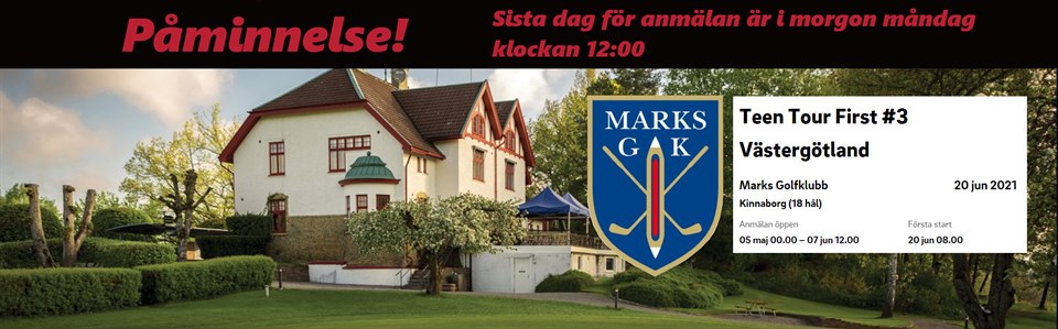 • Påminnelse om anmälan till Teen Tour First #3 på Marks GK