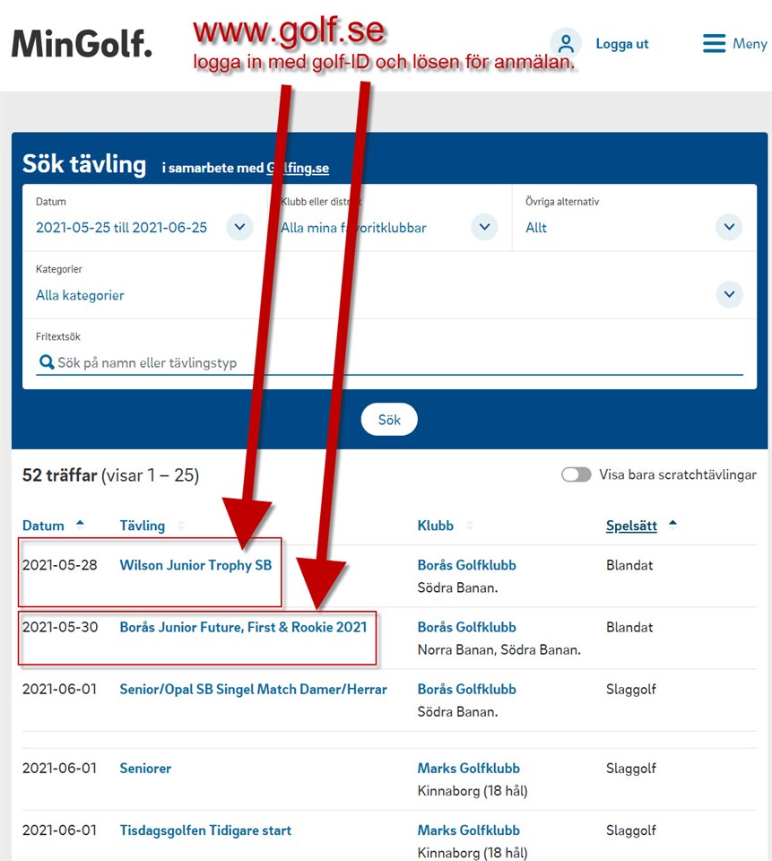 • Alla anmälningar till tävling sker nu på Golf.se!