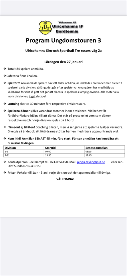 Här kommer även tiderna för helgens ungdomstour i Ulricehamn Ungdomstouren 25 jan 2024 0kommentarer