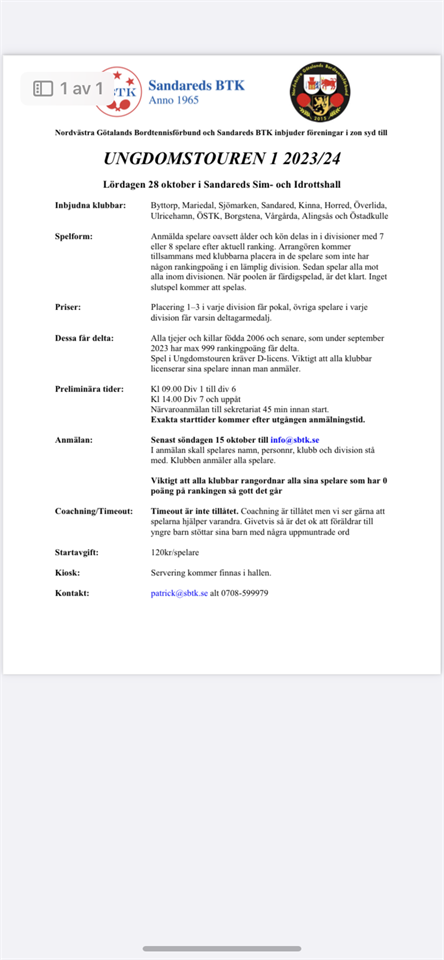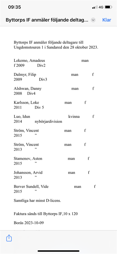 Go förmiddag 👏 Bifogat finner ni anmälningarna till ungdomstouren i Sandared. Ungdomstouren 10 okt 2023 2kommentarer