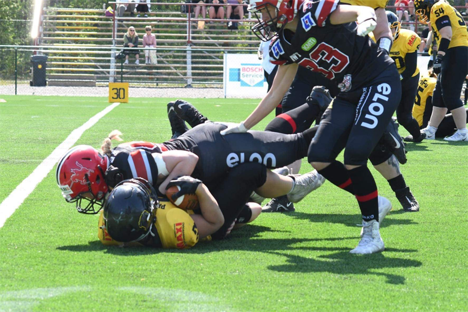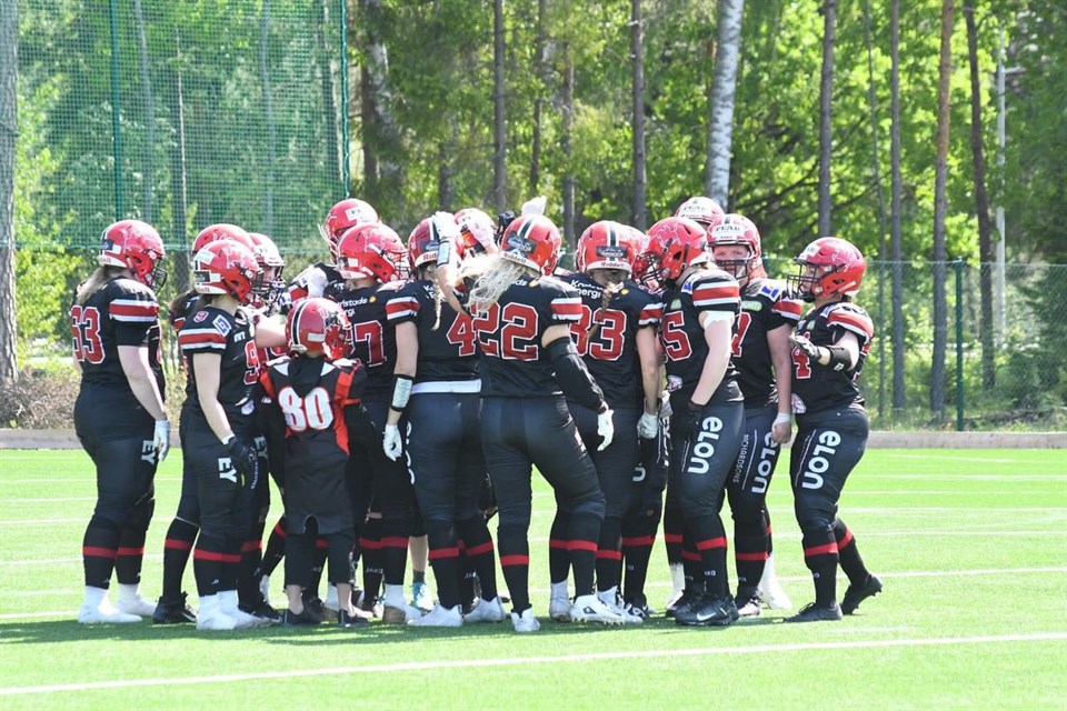 När: 17 juni, kickoff kl 13.00 Var: TIngvalla IP Carlstad Crusaders går in i sista delen av serien och efter matchen mot Göteborgs Marvels, som bjöd på härligt motstånd, står nu siktet inställt mot Copenhagen Raptors som gästar Crusaders till helgen. -Vi spelade en bra match mot Marvels där vi kunde straffa dem på alla de turnovers de gav vårt defense och vi har med oss en god känsla inför helgens match, säger Linda Johansson, lagets spelande offensiva koordinator. Vad vet du om Raptors? -Jag varnade lite för danskorna redan innan säsongen då de hade ett slagkraftig lag på försäsongscupen i Limhamn. Vilka förväntningar har du inför helgen? -Hela laget är förväntansfulla inför lördagens seriefinal. Två obesegrade lag ska mötas och vi ser fram emot en tuff och fysisk match. Det ska bli strålande sol, fri entré om man bär svart/rött och seriefinal på Tingvalla. Även headcoach Henrik Dahl ser fram emot helgens drabbning och är nöjd med förra matchen som gav Cruaders ytterligare en vinst till protokollet. -Efter en såväl varm som tuff bortamatch mot Marvels så vänder vi hemåt och välkomnar Copenhagen Raptors till Karlstad. Matchen mot Göteborg var nog den fysiskt tuffaste så här långt och det var skönt att komma därifrån med en vinst och utan skador, säger Henrik Dahl. Vad är din känsla om Raptors? -Raptors är obesegrade den här säsongen men har en oavgjord mot tidigare nämna Marvels. De är ett duktigt och explosivt lag med vassa spelare på många viktiga positioner. Anfallet utmanar verkligen över hela planen och vi kommer att behöva steppa upp ytterligare för att hantera alla hot. Vad kommer att vara viktigt att tänka på vid helgens match? -Nyckeln defensivt i den här matchen är att hantera deras playmakers och inte ge upp stora spel! De har förmågan och har gjort åtskilliga spel på 30+yards under säsongen. Försvaret måste komma ut och spela sina ansvar, lita på varandra och flyga till bollen. Att båda tränarna ser fram emot helgen går inte att ta miste på. -Det kommer att bli en rolig och spännande match som ingen fotbollsälskare vill missa, säger Henrik och Linda instämmer: - Det ska bli strålande sol, fri entré om man bär svart/rött och seriefinal på Tingvalla, kan det bli bättre! Preliminära offensiva starters QB Linda Johansson WR Nathalie Bengtsson WR Anna Hedström WR Sara Lidner WR Greta Munters RB Selma Lindén OL Julia Enoxon OL Frida Olsson-Granlund OL Alma Gustafsson Preliminära defensiva starters DB Hedvig Palocci DB Svea Sköld DB Selma Linden DB Wilma Norlin LB Sara Lidner LB Alma Gustafsson LB Nathalie Bengtsson DL Emma Englund DL Greta Munters Foto: Elin Thimfors och får fritt publiceras. För ytterligare information kontakta sportchef Nathalie Bengtsson 0730202608
