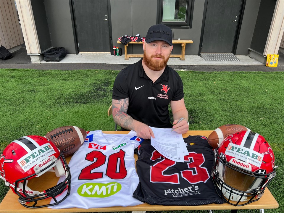 Efter sin ankomst mitt under säsongen förra året gjorde Kanadensaren Rory Kelly succé både på planen och i omklädningsrummet. Med fysiskt spel från och fint returspel på special team belv han snabbt en publikfavorit och smälte snabbt in i laget och tog där också en naturlig ledarroll. Drömmar om att bli hockey proffs som liten ändrades med tiden då han fick upp ögonen för Amerikansk fotboll och det blev målet istället. Detta ledde till slut till spel i Kanadensksiska topplaget University of Western Ontario Mustangs där han vann Vanier Cup och blev nationell mästare i Kanadensisk collegefottball. Rory är en atletisk spelare som Carlstad Crusaders försvar kan använda på flera positioiner. Under föregående år användes han både på DB och LB positionen vilket är en stor fördel för laget. Med en historik att spela även på den offensiva sidan av bollen kommer vi säkerligen få se Rory även där i Carlstad Crusaders färger denna säsongen. -"Det känns riktigt kul att vi får tillbaka Rory även i år, hans intåg i laget under säsongen förra säsongen var en mycket positiv injektion. Nu får vi tillbaka en kille som vi vet vad han går för, som vi kan använda på många positioner samt är en riktigt härlig kille att ha med i laget." säger klubbchefen Rikard Borg. -"Förra året var en fantastisk upplevelse, jag träffade många härliga människor både i och runt Carlstad Crusaders men också i Karlstad. Säsongen kanske inte gick som vi hade velat med en semifinalförlust mot Örebro Black Knights men jag tror att det fanns mycket att lära av säsongen och med våra unga talanger var det en möjlighet att se dem växa! Laget har en så bra kultur som bygger på hårt arbete och engagemang. Trots alla motgångar vi ställdes inför med skador höll vi kursen och alla spelade hårt oavsett omständigheterna. Detta gör mig exalterad inför den här säsongen nu när våra yngre talanger fortsätter att växa och med några nya spelare som tillkommit." Säger Rory och fortsätter. "När jag anlände tidigare i veckan kunde jag se att laget har tränat och jobbat hårt på gymmet då killarna har kört försäsongsprogrammet med fystränaren Marco Gudding. Mina förväntningar inför säsongen är ett mästerskap! Jag tror helhjärtat att om vi fortsätter att bli bättre varje vecka så finns det ingen anledning till att Karlstad inte kan ta ett guld den här säsongen." Carlstad Crusaders inleder säsongen kl 15:00 den 15 April hemma på nya Sola Arena då man möter Tyresö Royal Crowns. Foto: Håkan Bolund. För mer information, kontakta Rikard Borg på rikard.borg@crusaders.se alt. 0703-14 04 57.