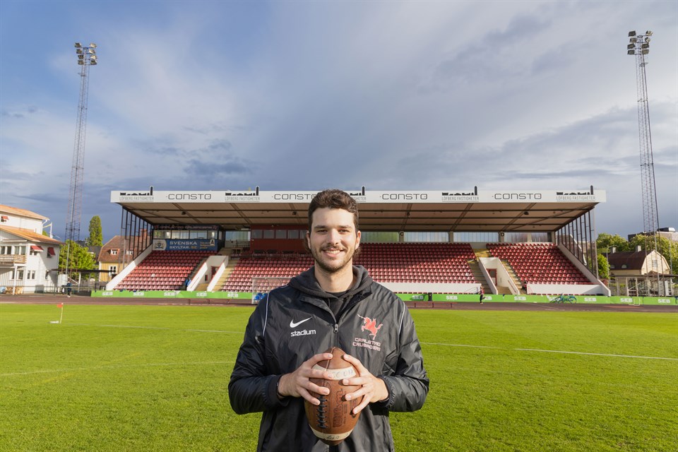 I matchen mot Eidsvoll skadade sig Timothy Morovick så illa att han missar resten av säsongen. Nu är det klart att Connor Carusello, 23, ersätter amerikanen på quarterback-positionen. – Albin Forsman gjorde det otroligt bra senast, men vi känner att vi behöver ha fler spelare på positionen, säger B.D Kennedy, sportchef för Carlstad Crusaders herrsektion. Carlstad Crusaders genomgår en stor generationsväxling på herrsidan. Det krävs nästan två fulla händer för att räkna antalet spelare som förra säsongen spelade i föreningens U17-lag som redan fått rejält med speltid – och i flera fall gjort stora avtryck – i Superserien. Spelare som alltså egentligen skulle ta klivet upp i U19 i år (en serie som avgörs i höst). Däribland Albin Forsman som klev in i A-laget med fullt fokus på en roll som wide receiver och kicker. Men redan mot Tyresö Royal Crowns fick han kliva in som quarterback och ledde då laget till seger. I hemmapremiären på Eidsvoll 1814’s fick han återigen ersätta Timothy Morovick som klev av skadad. En skada som nu visat sig så pass allvarlig att amerikanen inte kommer spela mer den här säsongen. – Albin klev in och passade för över 350 yards mot Stockholm, så det låter kanske konstigt att vi tar in en ersättare. Men det har varit tydligt den här säsongen att vi behöver djup på alla positioner så vi vill helt enkelt fortsätta säsongen med två quarterbacks. Albin är ung och oavsett vad som händer den här säsongen så har han tagit steg i sin utveckling som är viktiga för hans framtid, säger B.D Kennedy. Nyförvärvet Connor Carusello anslöt till laget i samband med lagets tisdagsträning. Någon som välkomnade Connor lite extra var Carlstad Crusaders försvarsgigant Mattias Eriksson som spelat tillsammans med kanadensaren under sin tid på Wilfrid Laurier University. – Superkul att Connor är här! En trygg spelare som jag tror kommer bidra med ett viktigt lugn till vårt anfall och laget som helhet. Han har dessutom en kanon till arm! Så det ska bli spännande att se honom i matchen mot Oslo Vikings i helgen, säger Mattias Eriksson. Connor Carusello har precis avslutat fem år på Wilfrid Laurier University där han bland annat blev en ”East West bowl invite” som en av Kanadas bästa spelare och han var nyligen inbjuden till den kanadensiska proffsligan CFL:s combine. – Jag trivs i passningsfickan och har en stark arm. Att komma till Carlstad Crusaders var en möjlighet för mig att fortsätta tävla. Jag vill vara en ledare och hjälpa ett redan bra lag i en stad som jag har hört oerhört bra saker om. Nu ser jag bara fram emot att komma in i laget och lära känna alla, säger Connor Carusello. Foto: Håkan Bylund