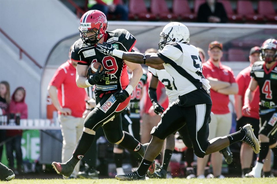 Han har två säsonger bakom sig i Carlstad Crusaders. Förra säsongen återvände han dock till moderklubben Tyresö Royal Crowns. Nu återvänder Kevin Börzei till Karlstad och kommer nu att få möta just Tyresö i Superserien. – Det kommer vara blandade känslor, men jag kommer alltid köra 100 procent, säger Börzsei. De tidiga indikationerna var att Superserien för herrar skulle utökas från fyra till åtta lag, bland nykomlingarna fanns ett storsatsande Tyresö Royal Crowns. Flera lag droppade dock av, men Tyresö gör Carlstad Crusaders, Stockholm Mean Machines och Örebro Black Knigts sällskap i den högsta serien. Efter SM-guldet 2020 lämnade Kevin Börzsei Carlstad Crusaders för att återvända till ett storsatsande Tyresö. Laget gick starkt i division 1 och levererade många spelare till det starka svenska landslag som tog EM-silver i somras – bland dem wide receivern Kevin Börzsei. – Känslan inför säsongen är att det kommer vara en serie med många jämna matcher, det är på förhand inget lag som sticker ut och känns överlägset. Alla lagen har en bra chans, säger Börzsei. En bidragande orsak är flera samtal med Timothy Morovick, quarterback och assisterande offensiv koordinator i Carlstad Crusaders. – Att komma tillbaka till Crusaders kändes som det rätta valet, jag vet vad klubben går för och hur seriöst det är. Jag känner också att jag och Morovick klickar bra och att vi kan göra något riktigt bra den här säsongen, säger Börzsei. Samtidigt medger an att det kommer vara speciellt att ställas mot Tyresö i seriespelet. – Det kommer vara blandade känslor, jag har stor respekt för Tyresö och Calle Haglind. De har gjort ett grymt jobb med att få in många nya spelare som kommer göra dem till ett tufft lag att möta. Men oavsett vilket lag jag möter kommer jag alltid köra 100 procent för att vinna, säger Börzsei. För Carlstad Crusaders är det givetvis glädjande att kunna välkomna en av Sveriges bästa wide receivers till klubben. – Sjukt kul att välkomna Kevin tillbaka till Karlstad. Det är en ”playmaker” och han kommer ha en viktig roll i vår offensiv. Det ska bli spännande att se vad vår grupp med unga wide receivers kan åstadkomma, säger Daniel Holmgren, head coach i Carlstad Crusaders. – Otroligt kul att få tillbaka en spelare som Kevin, det är en spännande atlet som kan göra skillnad på flera olika positioner, säger B.D Kennedy, sportchef i Carlstad Crusaders. Foto: Tommy Andersson