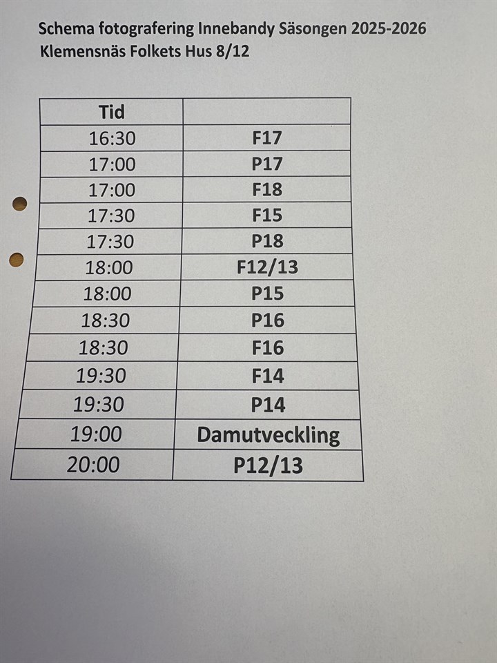 Fotografering 8/12 Innebandy säsongen 2025-2026