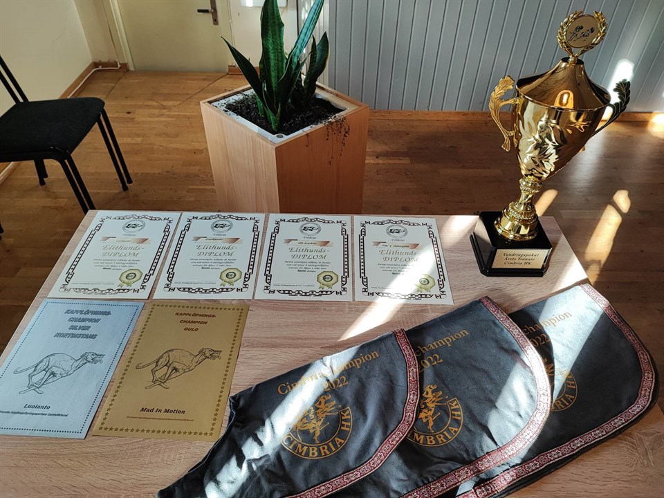 Igår hade Cimbria HK sitt Årsmöte, i stora salen i vackra Tommarps Bygdegård. Förutom ett trevligt årsmöte (med mycket god fika!) delades diplom ut samt nyinstiftade Cimbriachampions (greyhound, saluki, whippet) samt Årets tränare. Grattis alla pristagare!! 🎊🎉 Elithundsdiplom: Luolanto!! (sprint och medel) MB Anakin!! (sprint) YM's Amazon!! (sprint) Silverdiplom: Luolanto!! Gulddiplom: Mad In Motion!! Cimbriachampions (inom klubben) Ehan!! (saluki) Elmer!! (whippet) Luolanto!! (greyhound) Årets tränare 2022: Nina Bliding/Blidingia Racing!! CIMBRIAHK 20 feb 2023 0kommentarer
