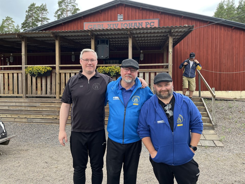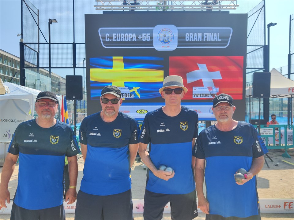 Det svenska veteranlandslaget i boule stod för en stark insats vid Europamästerskapet i Santa Susanna, Spanien, där man spelade hem ett välförtjänt silver. Laget bestod av: Mikael Gustafsson (Carl XIV Johan Petanque, Karlsborg) Roger Söder (Carl XIV Johan Petanque, Karlsborg) Patric Larsson (Trix, Skövde) Staffan Stjernholm (Göteborg Boulebangers) Resan till Spanien bjöd på oväntad dramatik. Ett försenat flyg gjorde att laget anlände senare än planerat och fick knappt någon tid för förberedelser innan tävlingarna drog igång. Tuffast blev också starten i gruppspelet, där svenskarna förlorade mot Andorra och hamnade i tidigt underläge mot Bulgarien. Men mitt i den spanska hettan började spelet lossna. Laget vände mot Bulgarien och följde upp med vinster mot Ukraina och England, vilket räckte för att ta sig vidare till slutspelet. Där visade svenskarna sin verkliga styrka. Finland besegrades i åttondelen 13-2, Nederländerna i kvarten 13-9 och i semifinalen ställde man av Belgien med förkrossande 13–2. I finalen mot Schweiz fick svenskarna kämpa hårt men lyckades inte riktigt få grepp om matchen. En fempoängare skapade spänning, men till slut var det Schweiz som tog hem guldet. 9-13. EM-silvret är ändå ett resultat som kommer gå till historien. Och för oss i Karlsborg blev det en extra anledning att glädjas med två landslagsspelare från Carl XIV Johan Petanque i silverlaget. Stort grattis till alla fyra men speciellt till Roger och Micke!