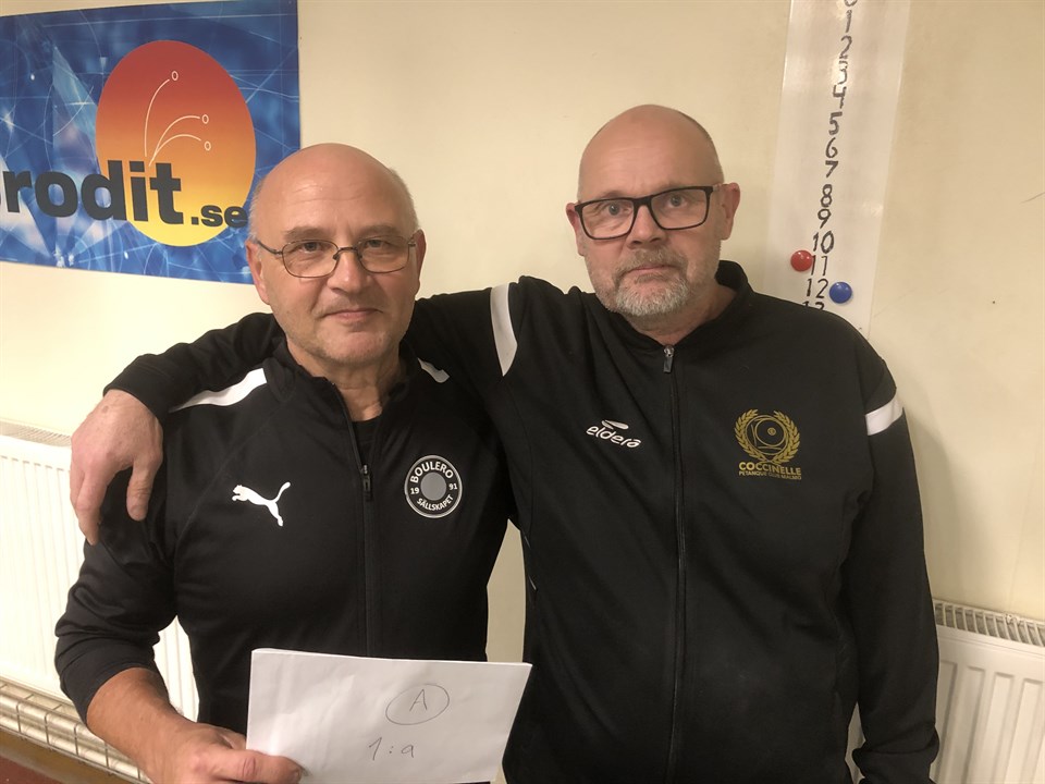 Tivedscupen öppen dubbel Idag spelades första delen av Tivedscupen. Det kom 17 lag till start.Tyvärr är det aldrig roligt med ojämna antal lag då ett lag får wo.. Grundspelet bestod av 4 st monrad spelad på tid innan det var dags att börja slutspelen. De 17 lagen indelades i en A-slutspel 8 lag och B-slutspel 8 lag. Ett lag hade spelat färdigt för dagen. De första slutspelsomgångarna spelades också på tid. Endast finalerna i A och B spelades till först 13. Finalen i A var en riktig rysare och väldigt jämnt. Vinnande laget vann med 13-12 efter att ha vänt matchen. Vi säger GRATTIS till följande lag. A-slutspelet. 1:a Tommy Michanek TPC – Conny Johansson TRX 2:a Kjell Andersson MAL – Pär Lundin TPC 3:a Roger Söder CPC – Owe Karlsson CAR 3:a Jörgen Jensen CAR – Jörgen Lungberg CAR B-slutspel 1:a Andreas Petersson SCP Andreas Roolf LAN 2:a Hans Lindqvist BIS – Ingvar Sjöholm BIS 3:a Annika Arvidsson TPC – Fredrik Arvidsson TPC 3:a Morgan Frick TRX – Kenneth Larsson TRX Domare Lennart Kjaer som kört från Boråsområdet för att döma dagens tävling. Thomas Persson tävlingsledare för dagen och i sekretariatet fanns Pia Lindman och Carin Brandberg. Som vanligt var det glada damer i kiosken som frestade med olika godsaker som fanns till försäljning. I morgon spelas andra delen av Tivedscupen och då är det V55 dubbel som gäller. Vid tangenterna Carin 221029