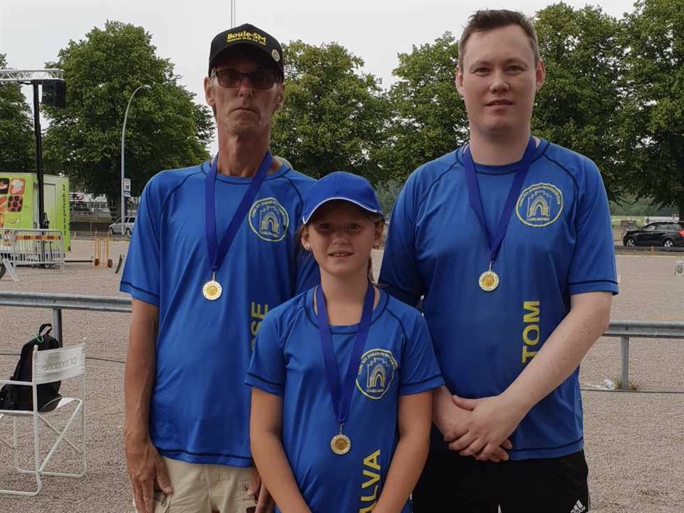 En solig, varm och trevlig SM-vecka är över. Området var riktigt bra med utmanande banor, bra servering (hamburgarna var grymma) och en badstrand några meter bort. Jag tycker det var riktigt kul att vi var ett strörre gäng från Carl XIV Johan i år än vi varit på de senaste SM. Totalt var vi 6 veteraner, 5 i öppen klass och 1 minior. Hoppas vi kan slå det nästa år när SM arrangeras i Linköping. Vi hade många starter under veckan och flera som tog sig till slutspel. Längst tog sig Micke i öppen singel som åkte ut mot blivande guldmedaljören i 16-delen. Jag spelade också i singeln och tog en fin skalp med vinst mot en landslagsspelare (Simon Åkesson) i 64-delen. Alla slutspelsresultat finns längst ner. Det som också var kul var att vår klubb hade en mnior som deltog på SM. Alva hade anmält sig till miniorutvecklingen. Det visade sig att Alva var den enda minioren som anmält sig, men hon togs väl hand om av Svenska Bouleförbundets ungdomsansvarig och av svenska förbundskaptenen för juniorer. Först var det att titta på juniorerna och lite taktikprat innan hon fick 1,5 timme privatträning. Alva spelade senare i veckan också generationstrippeln (extra tävling som arrangeras under SM) ihop med Bo-Göran Persson och mig. Vi slutade 12:a av 24 lag och det får vi vara riktigt nöjda med i Alvas tävlingsdebut. Lite priser fick vi också. Resultat V65 Mixed dubbel 1/32: Bernt Gustavsson och Marianne Gustavsson CAR 1/32 Annette Eriksson och Bo Lindman CAR V65 Trippel 1/32 Bo Andersson, Bernt Gustavsson, Bo Lindman CAR Öppen singel 1/16 Mikael Gustavsson CAR 1/32 Tom Hansen CAR Öppen dubbel 1/32 Mikael Gustavsson, Tom Hansen CAR Tack Tom för referat och bild Carin 20180725