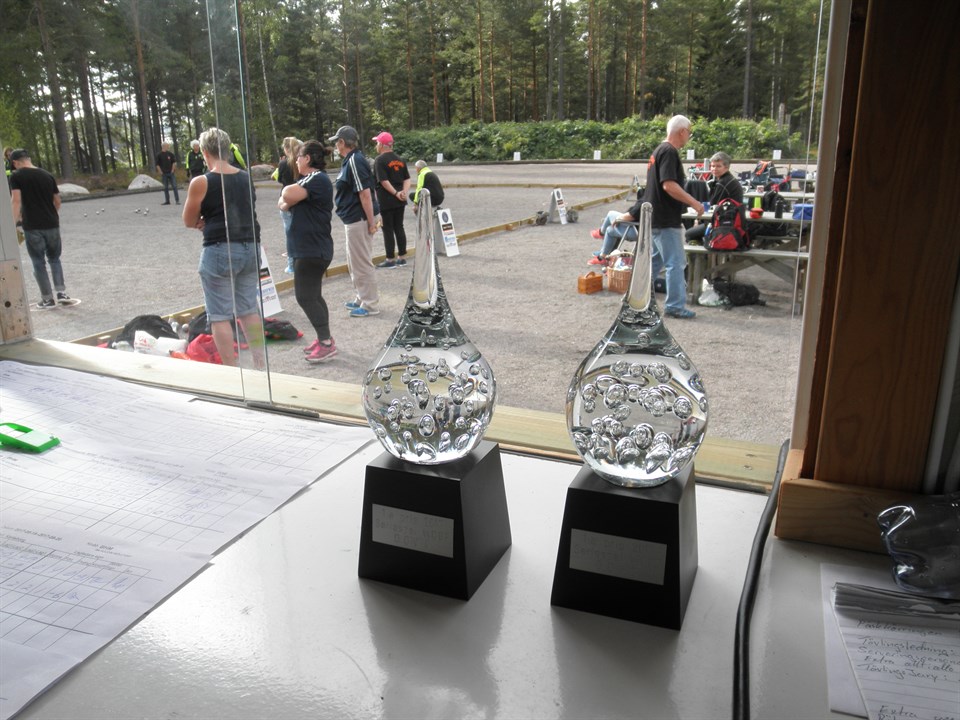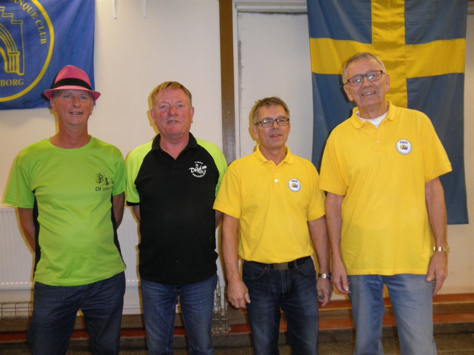 I helgen så arrangerades Nordic Petanque Weedkend i Boulognerskogen i Skövde. En riktig trevlig helg där allt från spelare utan licens till världsstjärnor möttes.Bl.a. så var landslag från Monaco, Frankrike, Wales, England, Norge och självklart Sverige representerade. Karlsborg var representerade av spelare i alla klasser och stod för några riktigt fina prestationer under helgen. Helgen började på fredag med V55 dubbel där tog Jerry och vår f.d. medlem Bengt-Åke Fhors en finfin 3:e placering. Senare på fredagen arrangerades också en öppen singel där Tom och Jerry representerade CAR. Tom stod för en av årets största skrällar inom svensk boule när han slog ut Rickard Nilsson (EM bronsmedaljör och mångfaldig svensk mästare i singel), tyvärr åkte han ut senare i A-slutspelet. Jerry hamnade i B-slutspel. På lördagen var huvudattraktionen den internationella trippeln med A, B. C och D slutspel. Här spelade Micke och Tom tillsammans med Herman Thorell från POM och de gjorde en riktigt bra tävling och slog ut flera elitspelare när de tog sig till A-slutspel. Där slutade det med en 9:de plats efter att ha åkt ut mot norska landslaget. På söndagen var det helgens sista tävling, en öppen dubbel och här spelade Jörgen Lungberg (som gjorde sin tävlingsdebut) med Tom och Bengt-Jonas. Micke och Jerry spelade med Åsa från Tibro och vilken skräll de ställde till med i första omgången när de slog ut ett av lagen från Monaco! Längst i tävlingen tog sig Bengt-Jonas och Micke som blev 9:a En mycket trelig helg med bra boule. Text och bild från Tom 20170829