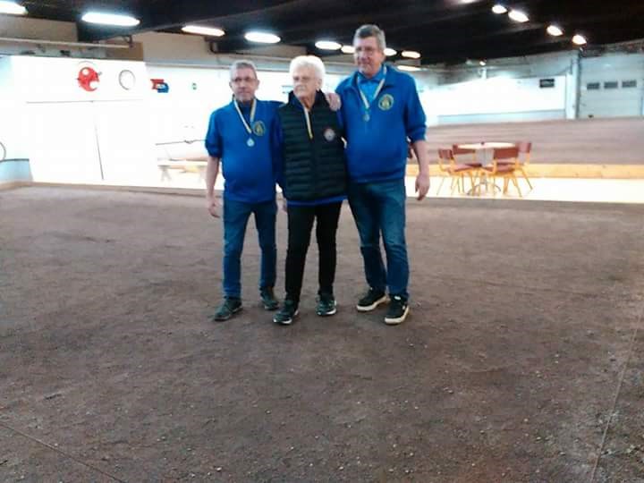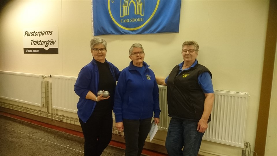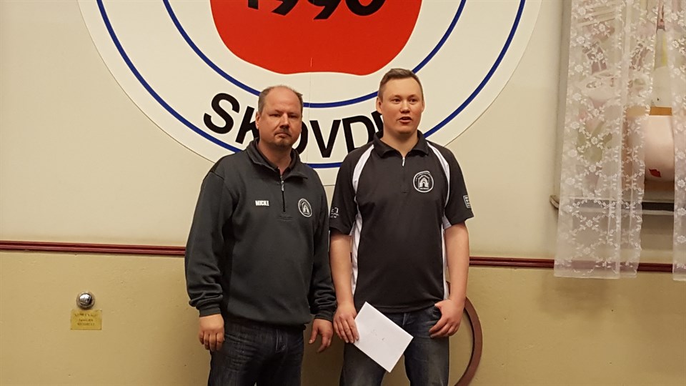 I helgen avgjordes Sködeblixten. Lördagen var det öppen klass som spelade och där hade vi ett lag som representerade klubben. Det var snabba matcher som spelade i form av monrad. Matcherna varade ca 20-25 minuter och lagen började med 2 poäng vardera. De 4 fyra första omgångarna spelades som vanlig men när omgång 5 och 6 spelades så dubblades poängen. Därefter var det dags för slutspel som också spelades på tid. Vi säger GRATTIS till Mikael och Tom som lyckades kamma hem en 3:dje plats. Tack John för bilderna. Carin Referat från John Jag stapplade in något sent i den stojiga boulehallen i Skövde, där luften var tjock av till hälften glädje och den andra hälften av svettblandad frustration. Tre spelare från vår klubb var där, Tom och Mikael spelade tillsammans. Jerry var där och spelade med före detta medlemmen Bengt-Åke. Jag såg inte så mycket utav Jerrys matcher men fick höra att det inte gick så bra för laget. Däremot såg jag de kvarvarande av Tom och Mikaels matcher. Ganska underhållande med Mikaels lugn och Toms superkoncentration skapar de enligt mig klubbens bästa dubbel. Tyvärr slutade det med lite otur när Tom satsar på ett skott på lillen för att få en skiljeomgång i semifinalen. Han fick ett skott rakt på lillen som flyger iväg, men stannar tyvärr någon centimeter från linjen och där var matchen avgjord. De slutade på en tredjeplats i A-finalen och kunde åka hem med känslan av att ha representerat klubben mycket bra. John PS. Tack till John för den underhållande läsningen. Du får gärna referera fler gånger. Carin