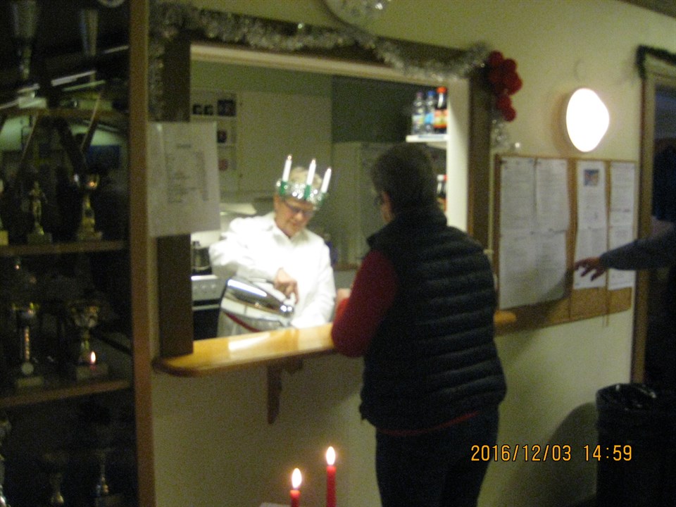 Juluppehåll för företagsboulen. Nu har vi kommit halvvägs i företagsboulen. 3 matcher spelades som vanligt. Så här halvvägs har det gått bäst för följande lag 1:a Team Snestuds 2:a Sten Byggtjänst 3:a Karlsborgs VVS. Nu får alla vila sig i form över jul och nyår. Vi kör igång igen den 3 januari och då kan mycket hända i resultatlistan. Luciadagen till ära var alla damerna i kiosken försedda med glitter i håret. Klubben bjöd alla på fika. Glögg fanns att "stärka" sig med innan allvaret började och i pauserna bjöds det på kaffe med lussekatt och pepparkaka. Klubben önskar alla EN GOD JUL och ETT GOTT NYTT ÅR och som sagt på återseende igen den 3 januari. Fullständig resultatlista finns under dokument. Carin
