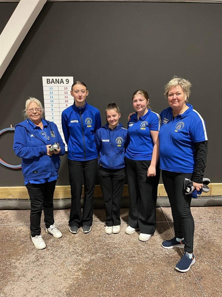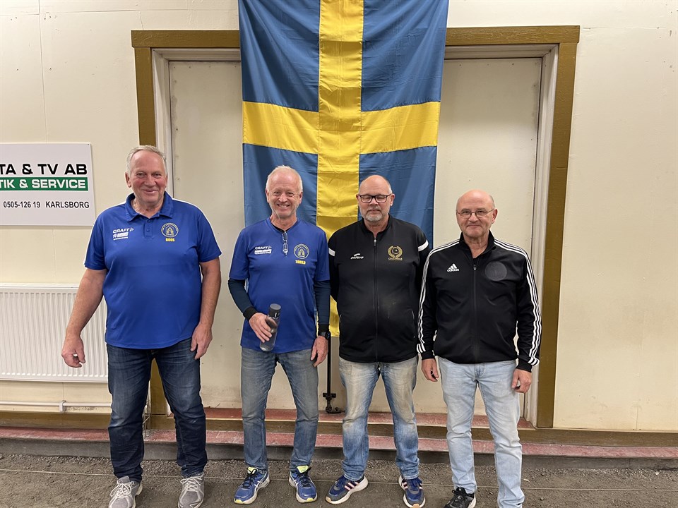 Svenska Cupen 2023 Årets grundomgång avgjordes i Jönköping och Skövde. När det gällde V55 och Dam var det direktutslagning medan V65 spelade 3 förlottade matcher samt 1 utslagsmatch. 30/9 V55 - spelades i Jönköping - här möttes CAR och La Boule de Trix. Förlust/direktutslagning med 8-18. 1/10 V65 - spelades i Jönköping - CAR mötte Mariestad, Falköping, vinst blev till finalspel där man mötte hemmalaget IST. Med slutresultatet delad 3:e plats. 8/10 Dam - spelades i Skövde - här mötte CAR Sörbyängen. I en rafflande grundomgång segrade Sörbyängen med 10-6. Mycket bra spelat av våra medlemmar… På bilden ser du från vänster lagledare; Eva-Lena Malm, lag CAR; Felicia Hansen Grip, Alice Källström, Emelie Källström, Åsa Lindberg ´Text och bild Pia Lindman