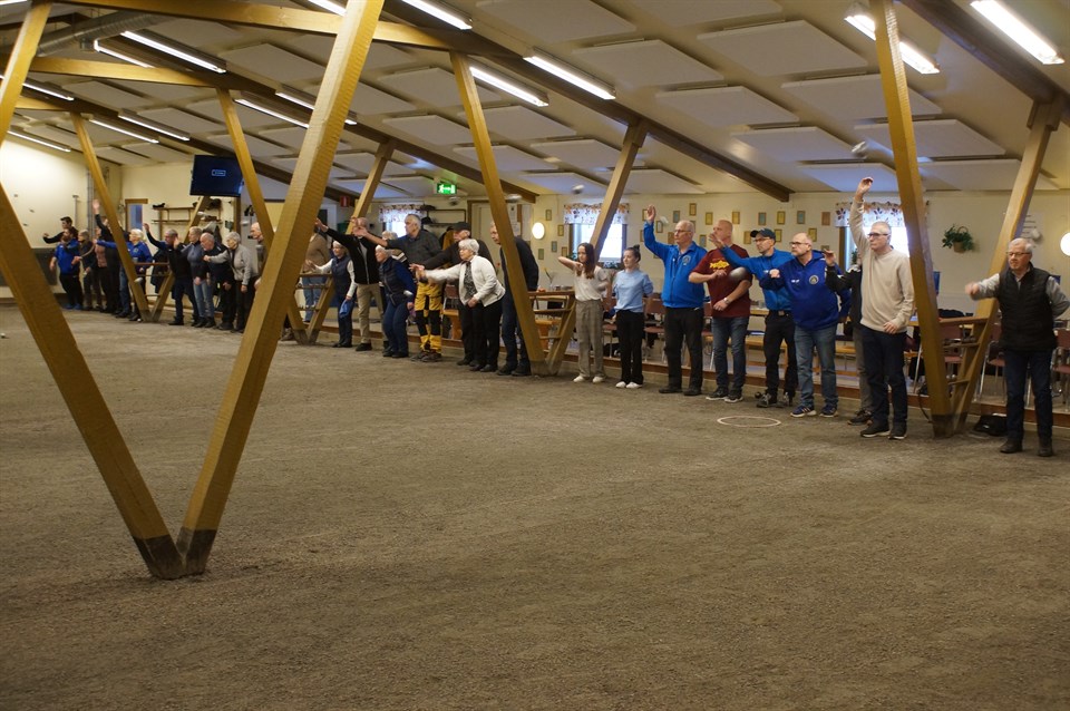 UPPSTARTSTRÄFF 2024 Gamla och nya medlemmar träffades under trevliga former. När vi kom så fanns ett frukostbord framdukat med kaffe och mackor. Här fick man fixa sin egen macka. Möjlighet fanns att titta och köpa klubbkläder, då vår leverantör fanns på plats en stund på förmiddagen. Efter att vi fikat, så tog Mikael till orda och berättade om klubbens historia från start fram till dags dato. Det var många vändor innan vi hamnade där vi är idag. Nu är allt samlat på en plats och vi har både inomhushall och utebanor. Åter till dagen aktiviteter. Första övningen var att vi fick ha ett klot. Alla skulle kasta på 3 och komma så nära ett band som spänts upp ca en halv meter från väggen. De som kastade över ”bandet” åkte ut och även de som var längst ifrån. Till slut så sorterades vinnare ut till sist. Därefter lottades vi ihop och spelade match som vanligt trodde nog de flesta. Mikael hade andra tankar och innan något lag hunnit till 13 stoppade han spelet. Vi fick stå kvar på banan till alla spelat färdigt pågående omgång, då överraskningen kom. Det lag som hade mest poäng fick flytta en bana och ”ta” över den lägsta poängen och så fortsatte spelet. Det var ett annorlunda och trevligt sätt att spela på. Därefter var det dags för en ny övning. Där fick vi ställa upp oss på led och fick ha 2 klot. I den övningen skulle man träffa ett klot som var utlagt på banan. Skjuta eller lägga emot fick man välja själv. Vid miss så ”dog” det klotet så i princip fanns det 2 chanser. Även här sorterades det ut en vinnare. Därefter var det dags för ett ytterligare ett spel. Ett mycket trevligt arrangemang som klubben ordnat. På detta sätt fick vi tillfälle att träffa nytillkomna medlemmar som valt att ha sin licens i vår klubb. Hur länge ”festen” höll på vet jag inte, men passar på att TACKA alla som hjälpt till med detta trevliga arrangemang. Bilder kommer från Sandolf och Kjell 20240121 Carin