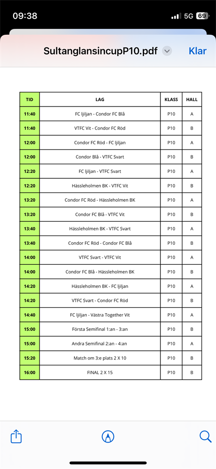 Hej. Här är spelschemat för söndagens cup i Ängshallen. // Niklas.
