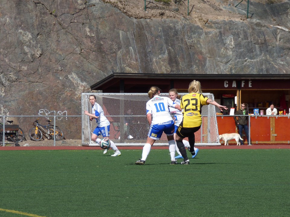 Dalhem IF - Mariebergs SK 3-0 (3-0) 1-0 (19) Bella Nilsson - assist Alma Nygren 2-0 (41) Alma Nygren, straff 3-0 (42) Alma Nygren - assist Hilda Nygren Laget: Målvakt: Amanda Rohnström Backar: Agnes Kolmodin, Hilda Nygren, Louise Ruthström och Luna Thulin. Mittfältare: Anna Gottfridsson, Frida Starkenberg (K), Frida Erlandsson och Jennie Karlsson. Forwards: Bella Nilsson och Alma Nygren. Avbytare: Sissela Andersson, Anna Carlsson, Viktoria Nygren och Agnes Olsson. Vi tar tag i matchen från start och trycker tillbaka Mariebergs SK från start. Det dröjer lite innan vi skapar de riktigt heta chanserna men i 19:e minuten hittar Alma Nygren fram med en fin passning till Bella Nilsson som skjuter högt i bortre gaveln. Vi fortsätter att trycka på och har en boll inne som väldigt tveksamt döms bort för offside. Tyvärr har inte domaren någon bra dag och tappar greppet om matchen där det blir rejält fula tag ibland. I 41:a minuten fälls Alma Nygren och hon slår själv säkert in straffen till 2-0. Minuten senare sliter sig Alma Nygren fri efter en fin lång passning från Hilda Nygren och trots en ful bentackling (som domaren helt släpper) så kommer hon loss och gör 3-0. I andra halvlek tappar vi skärpan lite och är inte lika aggressiva i pressen och därför skapar vi inte lika mycket. Andra halvleken blir mållös men vi gläds åt att vi knappt släpper till ett skott eller någon falrighet bakåt samtidigt som vi inte fick mer än en lårkaka på skadefronten när domaren inte stävjade ojust spel. Nu ser vi framemot 3:e raka matchen mot serieledarna som Ingarö IF nu är efter 3 omgångar. Claes Pettersson