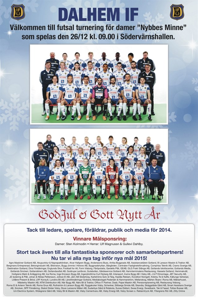 Dalhem IF önskar alla en riktigt God Jul och ett Gott Nytt År! Dam 22 dec 2014 0kommentarer