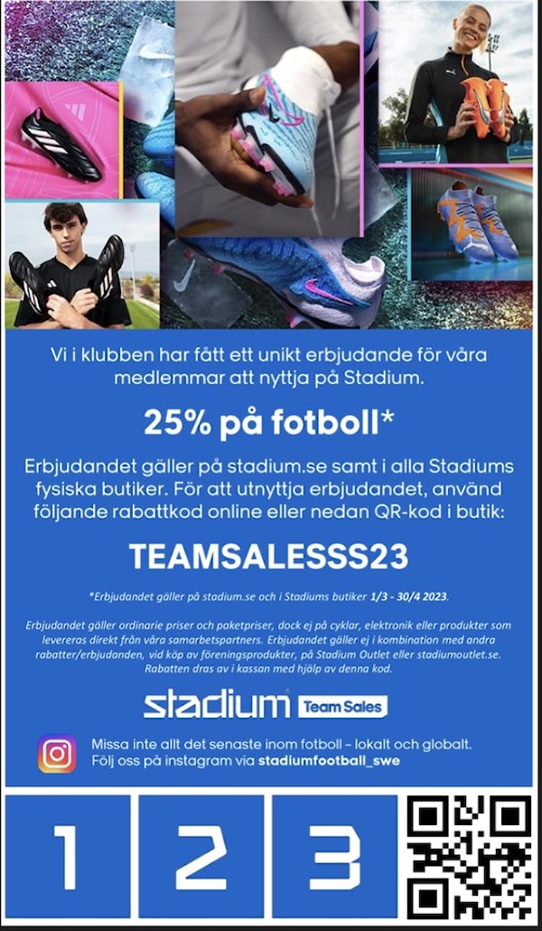 Här får ni en rabattkod som gäller på Stadium. Erbjudandet gäller 1/3-30/4-23