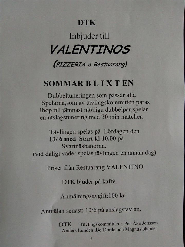 Finalister på bilden,Christer Larsson/Christer Nylander - Alex Borjegren/Ove Lindberg.Denna fina,soliga dag på svartnäsbanorna.10 dubbelpar spelade gruppspel i Solen.Fikade och grillade,hur kul som helst. Christer och Christer vann en jämn final med 5-4. Tack alla som spelade och tittade. DTK Blandat 15 jun 2020 0kommentarer