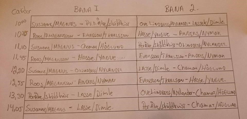 DTK Inbjuder till SOMMAR B L I X T EN Dubbeltuneringen som passar alla Spelarna,som av tävlingskommittén paras Ihop till jämnast möjliga dubbelpar,spelar en utslagstunering med 30 min matcher. Tävlingen spelas på Lördagen den 18/ 6 med Start kl 10.00 på Svartnäsbanorna. (vid dåligt väder spelas tävlingen en annan dag) Priser:Plaketter. DTK bjuder på kaffe bulle och läsk. Anmälningsavgift:100 kr Anmälan senast: 15/6 på anslagstavlan. DTK Tävlingskommittén Per-Åke Jonsson ,Anders Lundén ,Bo Dimle och Magnus Olander. Blandat 18 maj 2016 0kommentarer