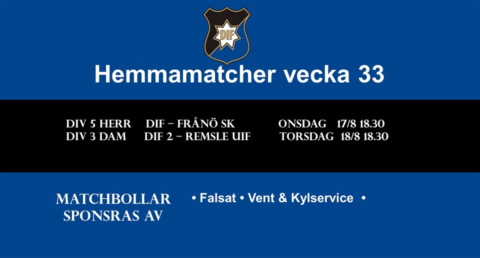 • Matcher vecka 33