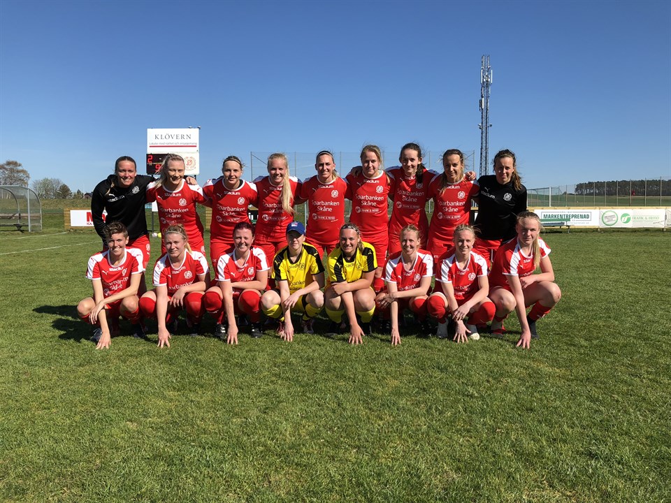 DIF Dam spelade idag mot IS Halmia inför cirka 150 åskådare hemma på ett soligt Dösjöbro IP. DIF spelade aggressivt och tryckte tillbaka motståndarna och tog en stabil vinst med 2-0. Dösjöbro IF Dam - IS Halmia 2-0 (1-0) 1-0 5 min Julia Johansson (Julia Lennartsson) 2-0 93 min Julia Lennartsson (Malin Gunnarsson) DIF:s trupp: Sacha Micha, Martina Sutalo, Agnes Nilsson, Madeleine Hejde, Johanna Fredriksson, Cornelia Lindgren (k), Julia Johansson, Melina Skarström, Julia Lennartsson, Em Lundström, Stina Stadig, Rebecca Edinge, Sanna Svensson, Josefine Carlsson, Ida Nilsson, Malin Gunnarsson, Anna Hellsten DIF försvarade högt redan från start och vann många dueller och tryckte tillbaka motståndarna. Redan i den femte minuten vann Em och Julia L bollen högt. Julia spelade in i mitten från höger och bollen kom via en försvarare till Julia J, som sköt in 1-0 till vänster i målet. Dösjöbro fortsatte med det aggressiva spelet under hela halvleken och kom i våg efter våg, dock utan att skapa några farliga målchanser mot det försvarsmässigt starka motståndet. Inte förrän i slutet av halvleken blev det farligt när Melina lyfte fram bollen till Em, men målvakten räddade och försvararna fick iväg bollen. Halmia hade dessförinnan haft ett farligt kontringsläge, men Sacha var bra ute och räddade med god hjälp av Madde, planens kanske bästa spelare. Hemmalaget fortsatte på samma sätt under den andra halvleken och började nu också skapa allt fler lägen. Julia L hittade Em och sedan Melina i lägen i mitten, men Halmiaförsvaret kunde rensa. Halmia kom i ett nytt kontringsläge från vänster, men avslutet gick just utanför Sachas vänstra stolpe. DIF fortsatte att trycka på och både Malin och Ida kom i lägen i mitten av halvleken. Men det skulle dröja till ett par minuters övertid innan ledningen utökades. Anna och Malin jobbade bra längs högerkanten och Malin kom in i straffområdet och spelade över till en helt fristående Julia L, som enkelt sköt in slutresultatet 2-0. DIF tog därmed årets första seger. Nästa match spelas på lördag borta mot IF Böljan Falkenberg.