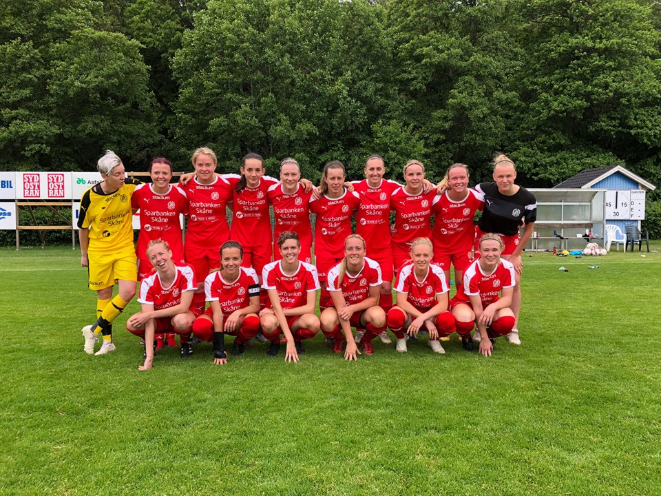 Toppstriden i 2019 års upplaga av Division 1 Södra Götaland har utvecklats till ett riktigt getingbo. 2 poäng skiljer serieledande Dösjöbro IF från Hammenhög som med en match mindre spelad ligger på en femte plats. Dösjan har efter förlust i premiärmatchen borta mot Färjestaden radat upp 10 förlustfria matcher, och tagit 24 av 30 poäng. Som nykomling var laget redan föregående säsong med på den övre halvan, men till den här säsongen är känslan att laget tagit ytterligare ett steg i sin utveckling. Lagkaptenen Cornelia Lindgren har varit med i laget sedan man startade upp i division 5 för 8 år sedan och har sett en utveckling under en lång period. Hon ser flera anledningar till att man numera är ett topplag i division 1: ”Vi har en väldigt jämn trupp som gör att vi kunnat höja både tempo och kvalité på våra träningar ytterligare. Sen går det inte att komma ifrån att vi har en väldigt stark mentalitet i laget. Många spelare som vill mycket och som också har en stark fysik och hyfsad rutin. Resultaten kommer inte gratis men många är beredda att ge mycket för det här laget.” Mittfältsstrategen som ju missat stora delar av vårsäsongen pga en bruten arm är sedan ett par matcher tillbaka i laget: ”Att sitta bredvid är aldrig kul. Samtidigt har jag kunnat glädjas åt hur laget presterat. Men självklart är det så att man trivs bäst inne på planen.” Corre och hela laget ser en tuff uppgift framför sig när man på lördag åker upp till Halmstad för match mot IS Halmia: ”Inför säsongen hade vi Halmia som en av förhandsfavoriterna. Det är ett spelskickligt lag med en hel del spetskvalité. Men vi åker dit med ett bra självförtroende och vet att det krävs mycket för att slå oss. Vi vill ha 3 poäng med oss hem, det siktar vi på i alla matcher.” Matchen mot IS Halmia spelas lördag 29 juni 14:00. Ni följer liverapportering via svenskfotboll.se. Nästa tillfälle att se laget på hemmaplan kommer 6 Juli när man tar emot Färjestaden hemma på IP. Vi föreslår att alla med ett Dösjan-hjärta kommer ner till IP och hjälper tjejerna att fortsätta sina fina trend och att slåss om en Play-Off plats till Elitettan.