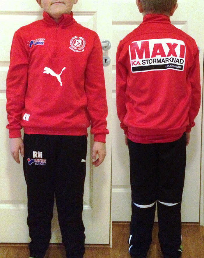 Nu finns det möjlighet att beställa Dösjöbro-overallen till er lilla fotbollskille. Klubben subventionerar priset året ut så att ni betalar endast 450kr. Betalning görs när ni fått overallen och då gärna via SWISH. Ni får en lapp med hur och vart ni betalar när ni får overallen. Overallen är en funktionsoverall från PUMA med Dösjöbro IFs klubbmärke. Ser ut som på bifogad bild och har ert barns initialer på både jacka och byxor. Storlekarna är normala, dvs varken små eller stora men ta gärna till lite i storlek då barn i den här åldern växer snabbt! Finns att beställa i storlek 116, 128 och 140 för våra små killar. Maila mig på thomas@hagalid.com om ni vill beställa. Det jag behöver veta är storlek och ert barns namn så att initialerna blir rätt. Jag behöver ha er beställning senast på söndagkväll den 23 november för att vi skall hinna få dem innan jul. P-09/10 16 nov 2014 0kommentarer