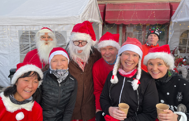 Det bästa sättet att börja julafton på, är verkligen att springa med DRT, sprida julglädje, frisk luft, härliga skratt, glada människor, kärlek och allt annat man kan tänka sig. En liten, men naggande god, tomte skara möttes på parkeringen vid vattentornet denna friska och krispiga morgon. Julkramar senare gav vi oss iväg, kajan tog täten och pekade med hela handen. Hans nissar följde artigt efter. Vi kom så långt som under järnvägstunneln och förbi stadshuset innan tomteskaran blev en lätt förvirrad, ängslig och tveksam. Vart skulle vi? Var tog tomten med hela handen vägen? Vi sprang förvirrat runt bland träden tills någon bestämde sig för att vi minsann skulle springa in på pressbyrån. Men vad ska vi sjunga? Hej tomtegubbar? Ja visst, den kör vi i år igen då? Vad hände med genrepen? In på ett tomt pressbyrån, en personal…. Samma personal som de senaste åren. Hahahaha. Han blev glad ändå. Vidare till ica, igen blev det hej tomtegubbar. Lite högre hej denna gången. Fortfarande lite trevande skara i sången men vi kämpar på. Tingberget nästa. Ja ni hör rätt. Tingberget. Martin verkar ha glömt att tomten nu mer hänger i gårdskulla. Mot torget, dans kring granen, vi lyckades inte nå runt hela. Vi var lite för få. Hej tomtegubbar. Jocke försökte sig på något annat men det blev direkt nerröstat. Sen blev det Hemköp med lite mer hej tomtegubbar. Utanför Hemköp stod det ett kex och smulade. Fanns spekulationer om nummer för framtida date å så. Nästa stopp blev brandstationen. Gubbarna var inte i köket utan i omklädningsrummet. Så då blev det ett varv inne på herrarnas. Kul. Och en fin bild på brandbilen och tomteskaran, som nu lärt sig texten hej tomtegubbar utantill. Backen upp över Hålabäck, skönsång på anemongatan hos Bettys vänner, genom gårdskulla till den fina tomten vi längtat efter. Han samlade ihop sina nissar fint och åter igen blev det hej tomtegubbar i blomsteraffären. Tack tomten för glögg och pepparkakor i år igen. Tacksam för all glädje vi spridit tillsammans, alla skratt och härligt sällskap. Hoppas ni alla får en fröjdefull jul med mycket kärlek och gemenskap. Kram från Betty Julbild