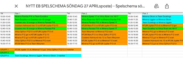 Nu har spelschemat till säsongsavslutningen i Sjöfruhallen på söndag 27/4 kommit. Säsongsavslutningen innefattar även en gemensam pizza-lunch som del av säsongsavslutningen på Ruccola Tomtebo.