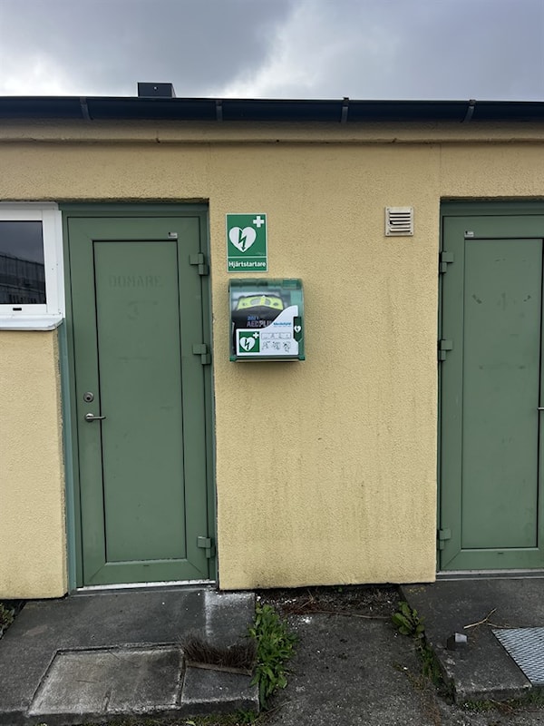 Nu sitter en hjärtstartare utomhus på IP. Den sitter på väggen vid omklädningsrummen.