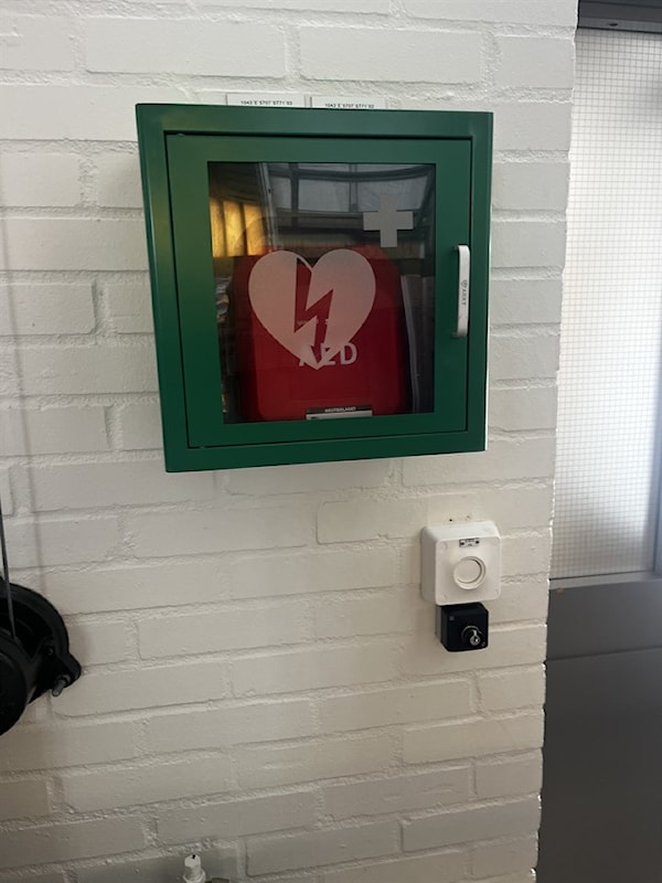 En ny hjärtstartare sitter i idrottshallen på Nyvångsskolan