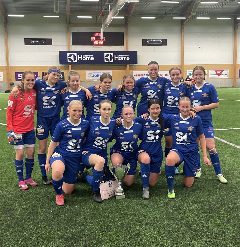 Det blev en riktigt trevlig E-Lux Home cup för Sunnanå Utveckling! Träningsmatchen mot Bureå några dagar före gav bra utdelning, för första gruppspelsmatchen mot just Bureå IF, gav en 3-2 seger där Nellie Holmlund gjorde alla tre målen. Oavgjort i andra gruppspelsmatchen mot Skellefteå FF F-17 vit, via 3-3 gav en gruppseger. Seger mot Morön BK, som gjorde comeback på damsidan, med 4-1 i kvartsfinalen. Sen även seger mot Burträsk i semifinalen med 1-0, gjorde att en ny match mot Skellefteå FF F-17 väntade i finalen. Det här gången SFF F-17 vit, som slog sina kompisar SFF F-17 svart, i semifinalen med 3-1. Finalen mot SFF blev spännande, där SSK utveckling klarade av att vända ett 1-2 underläge och vinna med 3-2. Matchvinnare blev Nellie, då hon gjorde sitt 6:e mål och också blev skyttedrottning i turneringen. Framförallt vill Madde lyfta fram förmågan att anpassa sitt spel efter vilken motståndare man mötte. Men även en fantastiskt fin inställning till matcherna, där alla hjällpes åt att bärga segern i E-Lux Home cupen. Nu får bucklan stå i omklädningsrummet och påminna er under säsongen om den härliga triumfen! Nu väntar ett välförtjänt sportlov för alla spelare och ledare. Bra jobbat allihopa! /Krister