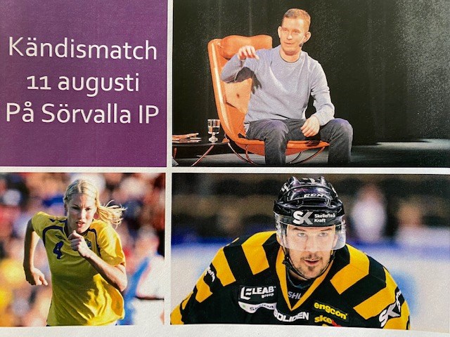 Vi hälsar välkomna till en folkfest på Sörvalla den 11 augusti! En riktigt trevlig kväll med flera spännande aktiviteter som: - Paneldialog med Erik Niva, Jimmie Ericsson och Hanna Marklund (16.30-17.30) - Parasportmatch mellan Morön Barca och Skellefteå Parasport (18.15-18.45) - Kändismatch mellan Sörböle FF - Kändislaget (19.00 - ca 20.20) - Straffsparkstävling med bl a Skellefteå AIK (ca 19.35) Vilda kocken (Erik Brännström) kommer att vara på besök och göra en maträtt med vilda smaker (kostar 99 kronor). Vi kommer även att sälja fika, hamburgare, dricka, godis, mm.. Electrolux Home säljer gott kaffe och smotties, där pengarna tillfaller SSK. RF-SISU finns på besök och visar upp möjligheter kring parasport. Arrangemanget sker i samarbete med Morön BK. 40% av nettointäkterna går till en gemensam ungdomssatsning på fotboll vintertid. 10% av nettointäkterna går till parasport fotbollen i Skellefteå. Vill man se paneldialogen med Erik Niva m fl, så kostar det 200 kronor inkl inträde till kändismatchen.. Vill man komma efter 18.00 och se parasportmatchen/kändismatchen, så kostar det 100 kronor/vuxen, 50 kronor för studerande över 15 år och pensionärer. ungdomar/barn under 15 år, gratis Vill man köpa förköp, så swishar man till SSK:s swishnummer, 123 350 0865. Skriv namn och vad det gäller på swishen. Då finns det en namnlista i huvudentrén till Sörvalla, med ert/era namn. Inga säsongskort eller fri entré för ledare gäller till den här specifika matchen!! Har ni frågor eller funderingar så hör av er. Hälsningar Krister Lundgren krister@sunnanask.se 070-528 55 28
