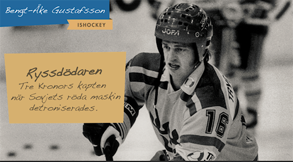 "Bengt-Åke Gustafsson, åh, vad stark han är där igen", kommenterade Arne Hegerfors i tv när Karlskogasonen fick pucken i mittzonen, drog en motståndare för att sedan - omringad av tre andra supersovjeter - transportera in pucken i motståndarnas zon.