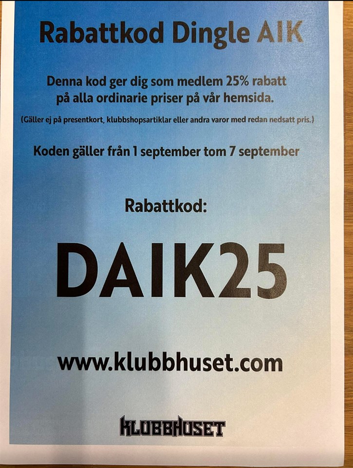 Hej! Vi har fått en rabattkod av klubbhuset som är giltig till söndag 7/9. Passa på att nyttja detta förmånliga erbjudande! Ha en fin dag! //Ledarna F14-16 3 sep 2025 1kommentar