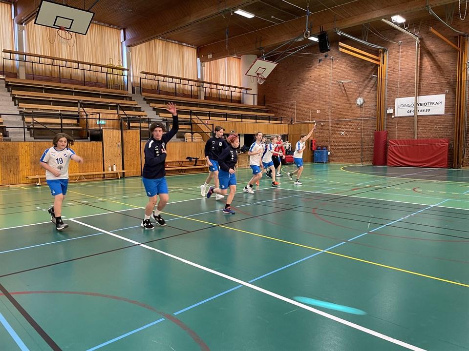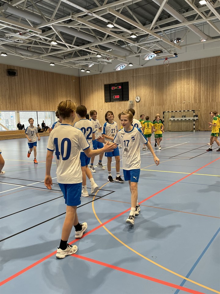 På onsdagskvällen var det dags för vår allra sista seriematch denna säsong. Vi går in med inställningen att vinna med 6 bollar. Varför? Då kniper vi en serieseger. Det står alltså mellan oss och SKÅ om vilka som ska ta hem seriesegern, dessutom på målskillnad. Grabbarna går in taggade, vi har bra fokus på uppvärmning men sedan händer något. Vi får inte träff bakåt och spelar för individuellt framåt. Dessutom bränner vi både straffar och ganska fria lägen när vi kommer igenom. En frustration växer och grabbarna börjar tappa huvudet. I utbildningstimeout uppmanar vi till att ta det lugnt, hjälpa varandra både framåt och bakåt, men vi får inte riktigt utdelning. Vi går in i halvlek med underläge 13-8. I halvtid pratar vi om rörelse, att hjälpa varandra och att vi är starka. Vi vet att vi är bättre än första halvlek och matchen är fortfarande inte körd. Vi kommer ihåg vår allra första match denna säsongen som var just mot SKÅ där vi hämtade in underläge 8-2. Vi vet att vi kan. Vi går in i en trevande start i andra halvlek, men sen börjar vi sakta men säkert kämpa oss närmre. Försvaret tuffar till sig, men vi är stundtals fortfarande stillastående framåt. Ibland kunde man tro att fötterna växt fast i golvet :) Men det tar sig, vi lyckas få in bollen och med 5 minuter kvar ligger vi lika. Försvaret står sig bättre än i första och Greger får tag på fler bollar bakåt. I slutskedet så lyckas vi ta hem en vinst med 23-21. Tyvärr lyckades jag inte få en bild. Det var ganska sura miner från grabbarna och de försvann snabbt in i omklädningsrummet, vi tog ju inte hem den där seriesegern. Men jag vill ännu en gång säga hur stolt jag är över grabbarna. Ännu en match visar vi på mental styrka och viljan att inte ge upp. Vi vänder ett underläge till vinst och vi spelar för varandra. Det har varit otroligt roligt att följa utvecklingen av grabbarna denna säsongen - allt ifrån tempo, teknik, samspel och försvar. Nu taggar vi till inför en helg i Västerås och Irstablixten! /Caroline