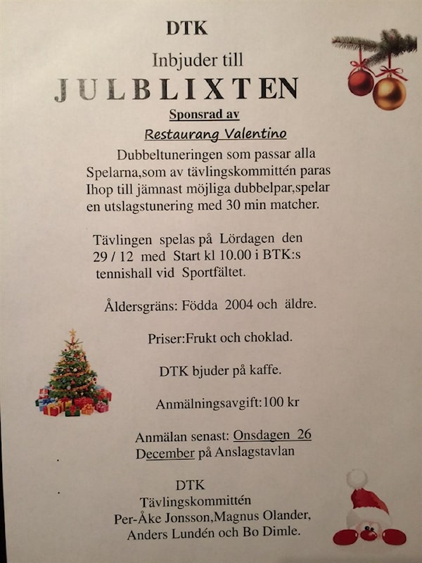 Tävlingen spelas på Lördagen den 29 / 12 med Start kl 10.00 i BTK:s