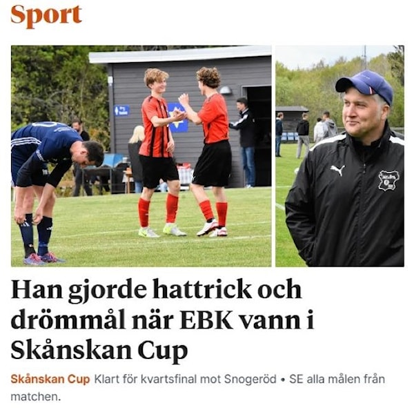 "Han gjorde både hattrick och ett riktigt drömmål när Eslövs BK:s P19-gäng höll lekstuga i Linderöd och gick vidare med hela 13–2 i Skånskan Cup. Filip Sjöberg kan nu återvända till A-lagsträningen med ett stort leende på läpparna."
