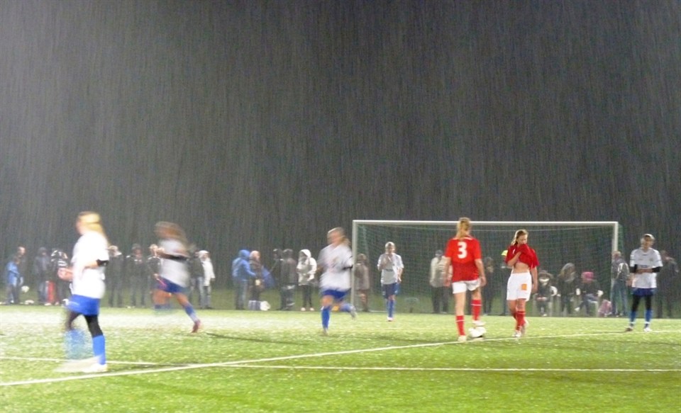 Tyvärr så blev det förlust på konstgräset vid Tordengården i Uddevalla. Vi var inte med i första halvlek då dom var mycket starkare än oss och trilla bollen riktigt bra. Vi lyckades ofta lyfta bollen men vi lyckades inte hålla fast den i våran offensiva del utan deras mittbackar var starkare än Lina och Zilan så bolljäkel kom hela tiden tillbaka till backlinjen. Vi är som vanligt väldigt tröga i första och kommer 2:a på de flesta bollarna. 1-0 kom efter ung 10 min efter ett friläge och 2-0 kom efter ung 30 min kommer 2-0 på skott strax innanför 16m. Vi red ut resten av halvleken. Andra var en jämn halvlek med där tjejerna äntligen tände till lite mera, vi lyckades komma upp i banan genom att Emelie och Gabriella lyckades kämpa till sej bollarna. VARFÖR INTE GÖRA DETTA I FÖRSTA, hade detta skett så vem vet hur matchen kunde ha slutat. IK Rösse var bäst i de 5 första minuterna och satte 3-0 i 8 minuten genom att dom fick ett fint läge och placerade bollen i bortre stolpen. Nu först vaknade Eds-tjejerna till och vi lyckades efter hårt arbete av Emelie och Gabriella vinna bollen utanför deras 16m varpå Lovisa sedan kunde servera Zilan och 3-1 var ett faktum, detta skedde i 58 min. 3-2 kom i 67 min av Lovisa på pass av Zilan. Vi var riktigt bra nu och kämpade väldigt bra. Vi höll uppe spelet hela halvleken men när det var ung 5 min kvar fick Rössö en hörna och en boll kom högt in över Hanna som bara fick fingertopparna på bollen, bakom Hanna stod det en Rösse-spelare och sköt in 4-2. Julia blev arg på publiken så hon var väldigt bra nu, Gabriella hade ont och var trött men var också den som slet mest tillsammans med Emelie´s grymma jobb på mitten. Lovisa fick en smäll i huvudet i slutet av första, så det tog ung 15 min in i andra innan det släppte, sen var det full fart på´na. Zilan var grymt bra och fick några bra lägen. Emma var stak när hon spela på mitten, speciellt hennes huvudspel samt att hon gick in i närkamperna. (Bilden: i andra halvlek började det regna rikligt, just då började vi spela riktigt bra, verkar som om det ska regna i morgon också så det lovar ju gott) Vi tar med oss andra halvlek till nästa match mot Landvetter IF i morgon (ops. i dag är det visst).