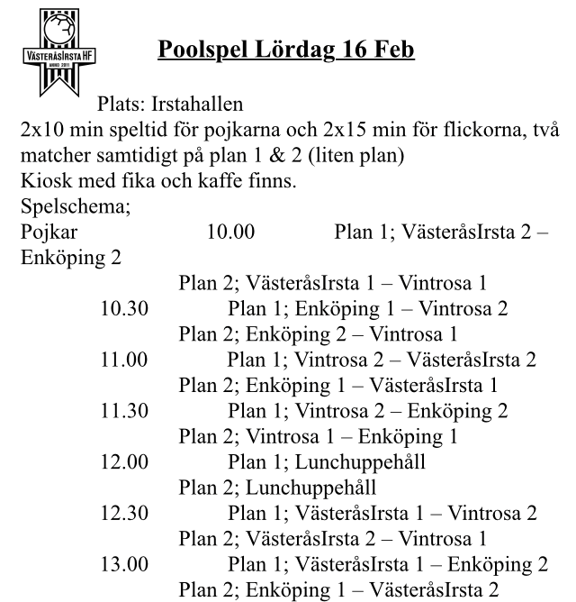 Klicka på bekräftelselänken i det mejl vi skickat dig för att börja ta emot uppdateringar från Enköpings HF P-2011.