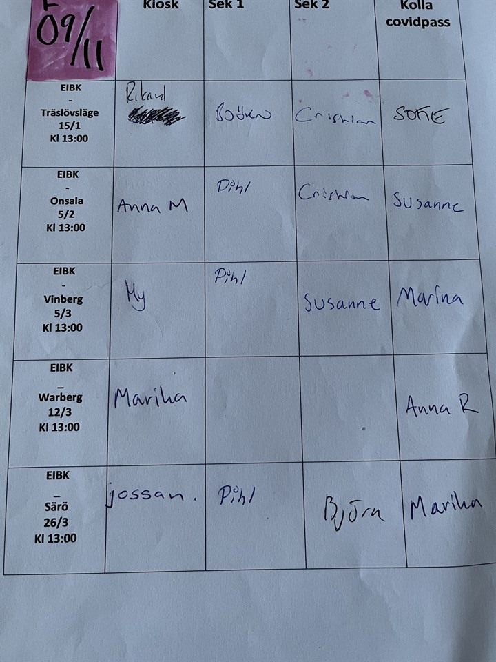 Hej! Skriv nedan när ni kan hjälpa till på hemmamatcher så fyller jag i lappen. Mvh