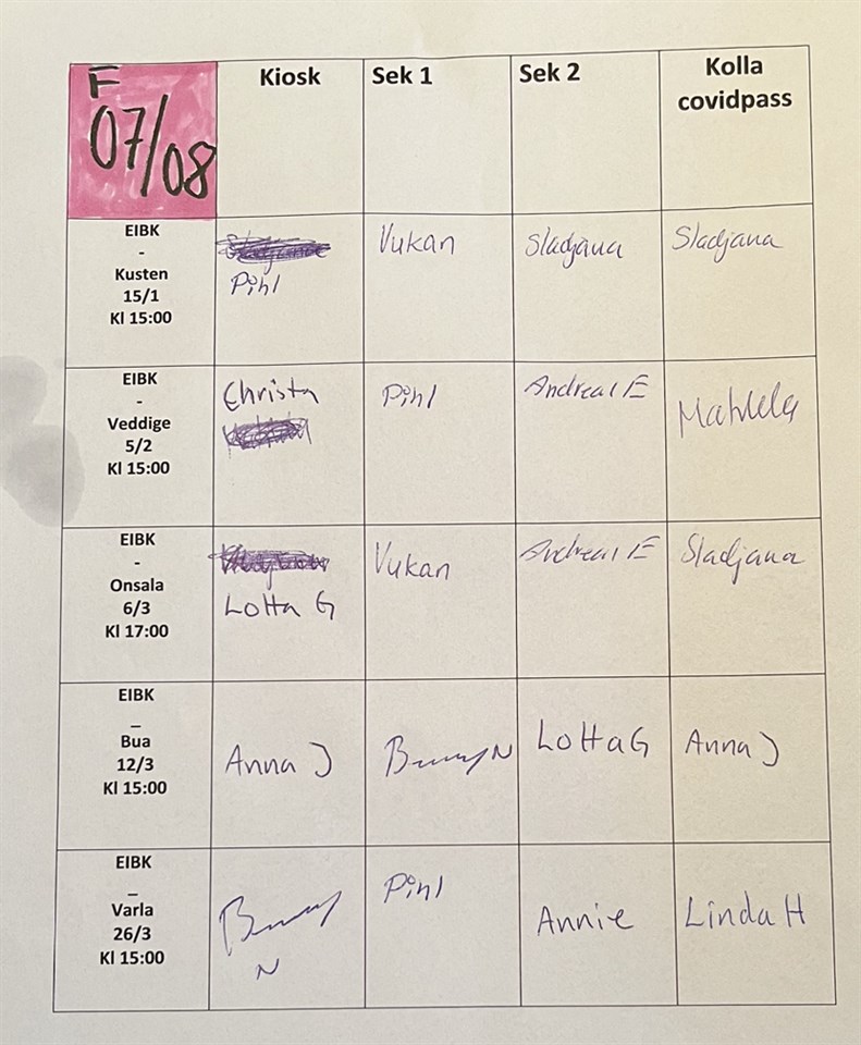 Hej! Skriv i kommentarerna när ni kan hjälpa till på hemmamatcherna så fyller jag i. Mvh