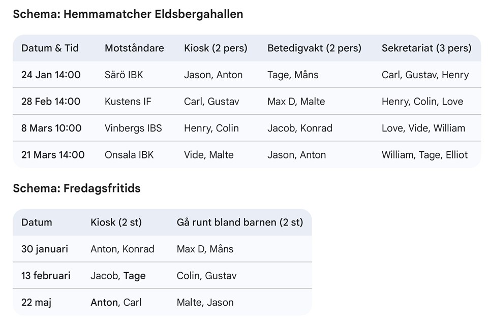 | Särö IBK P11/12* (hemma) | 24 jan, 14:00 |